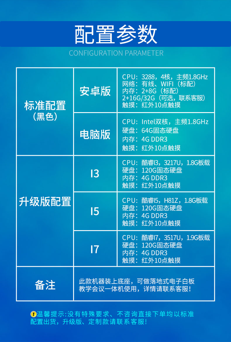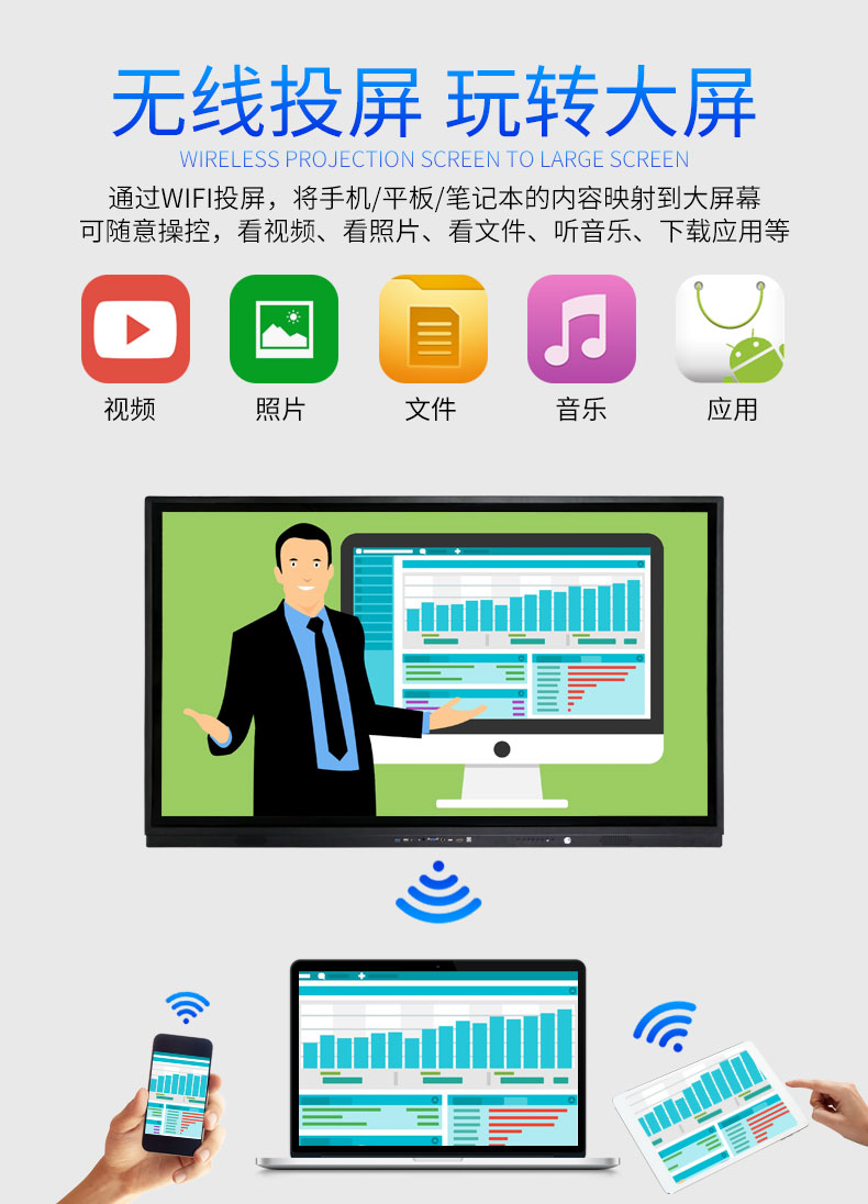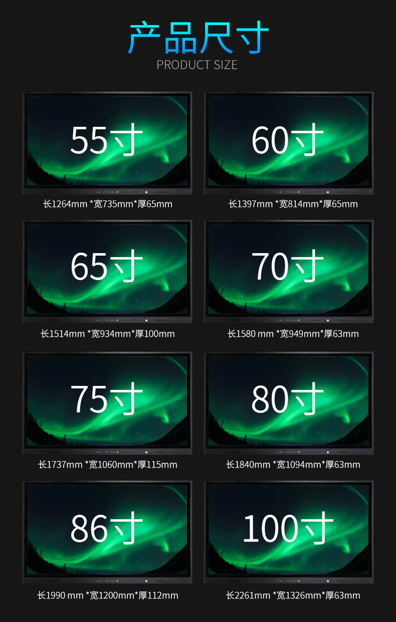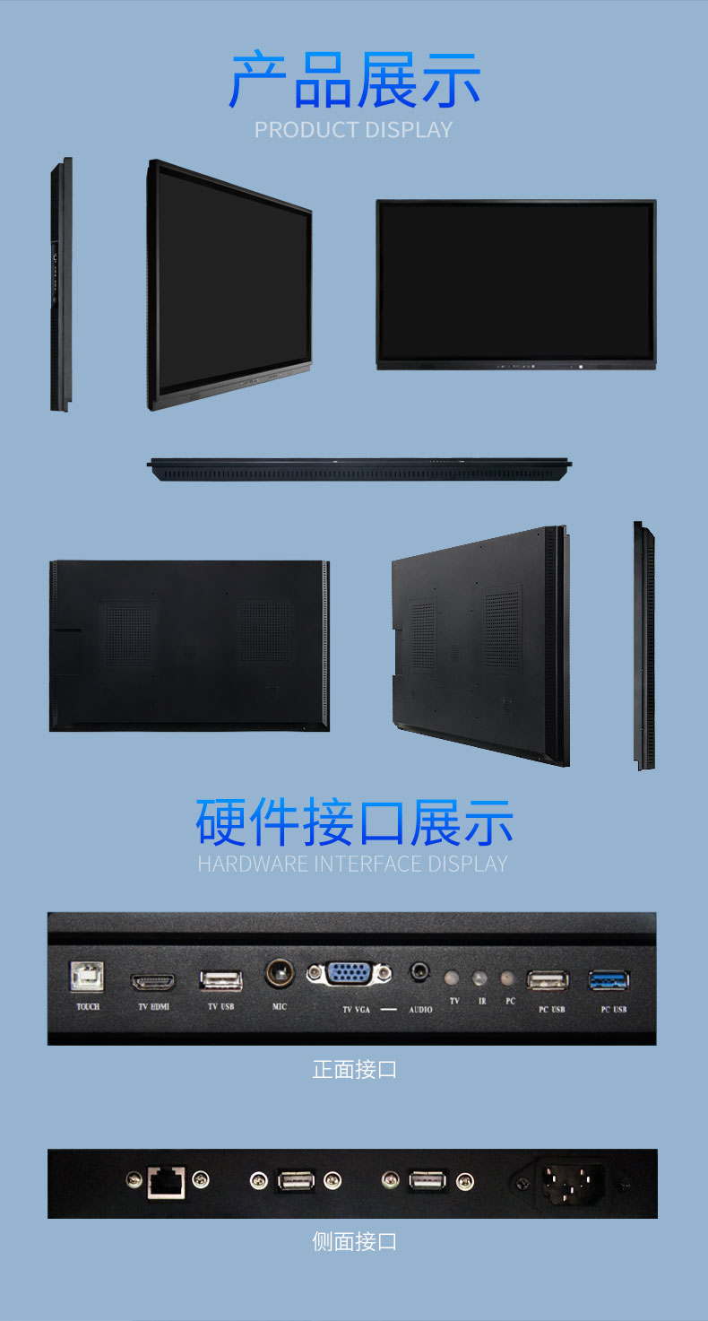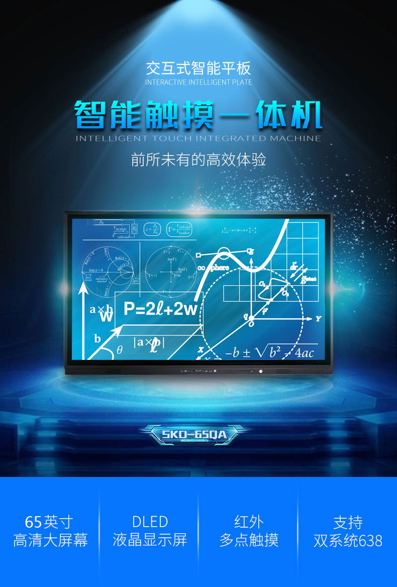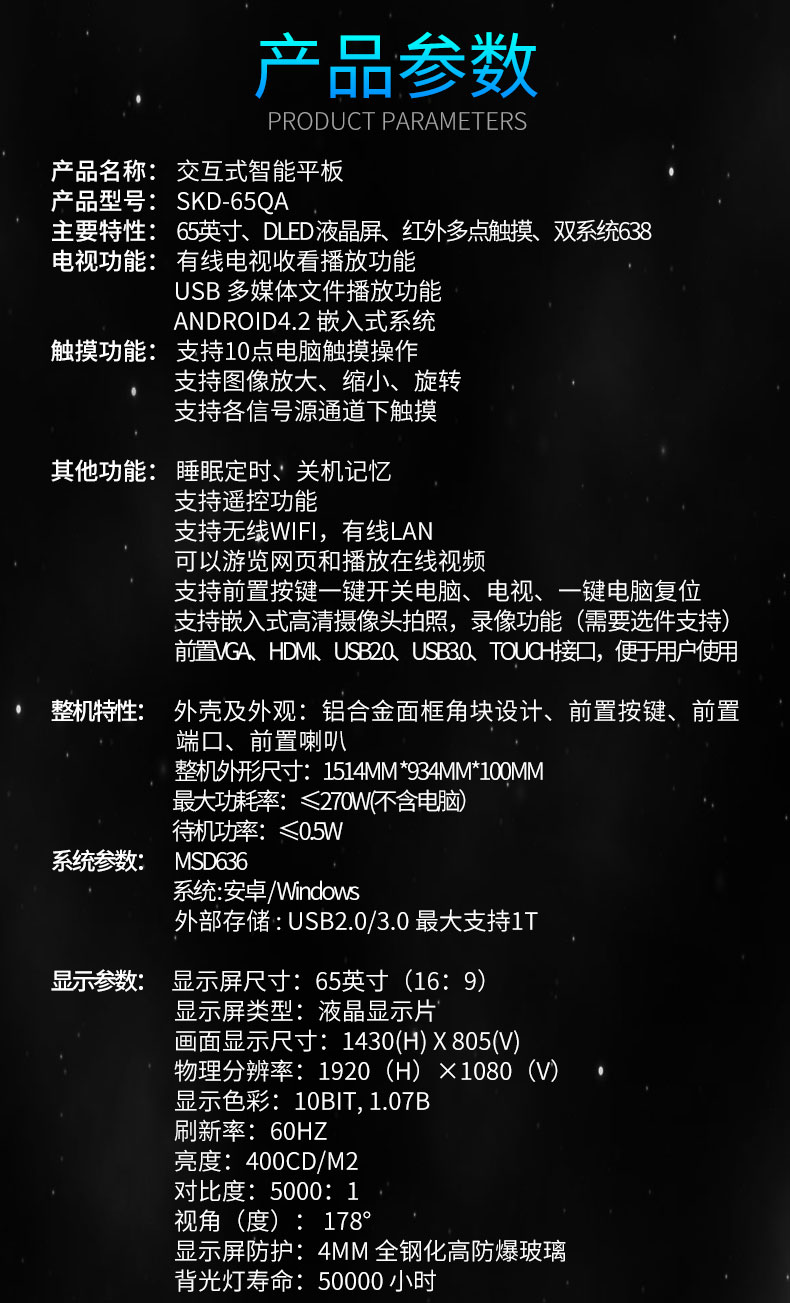主要特性:65英寸、DLED液晶屏、红外多点触摸、双系统638